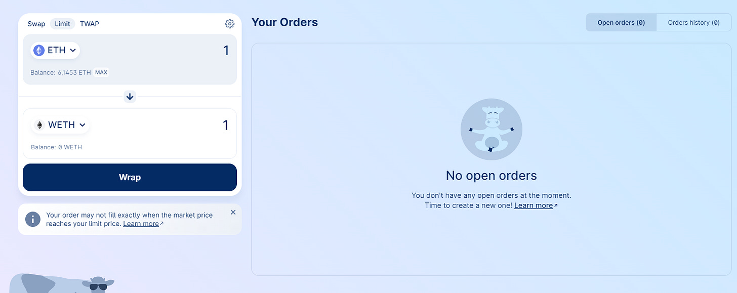 Y no solo eso, Cow Swap también te permite poner órdenes que se ejecuten cuando obtengas un precio objetivo: