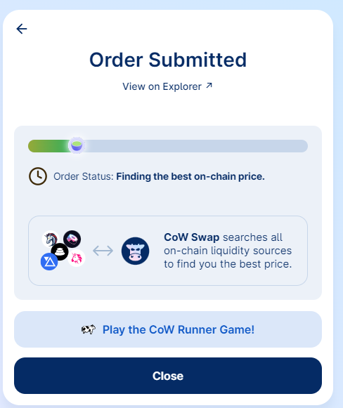 Para acabar, Cow Protocol entrega todos estos intercambios de una y los “oculta” en el mempool, así que tu intercambio está protegido de MEV (front running y sandwich attacks).